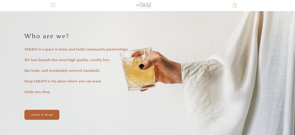 Shop TAKAVI is a third-party platform hosted by Shopify that provides brands that meet sustainability and ethical quality standards. I design, edit, create copywriting and visual content for the website. TAKAVI is an educational platform as well as a space to shop quality and ethically made products. The projected site launch date in the summer of 2022.
